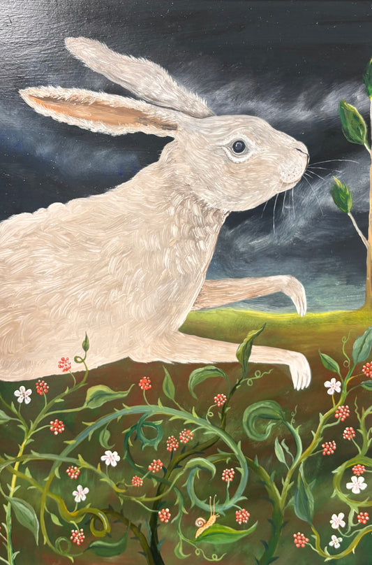 A darkly romantic element, evocative of the Golden Era of children’s literature is woven into the fabric of her paintings and designs, with clear influences from artists that have inspired her style (Gorey, Dulac, Rackham) apparent in each work. She amalgamates this influence with her own light-touch and irreverent humour.